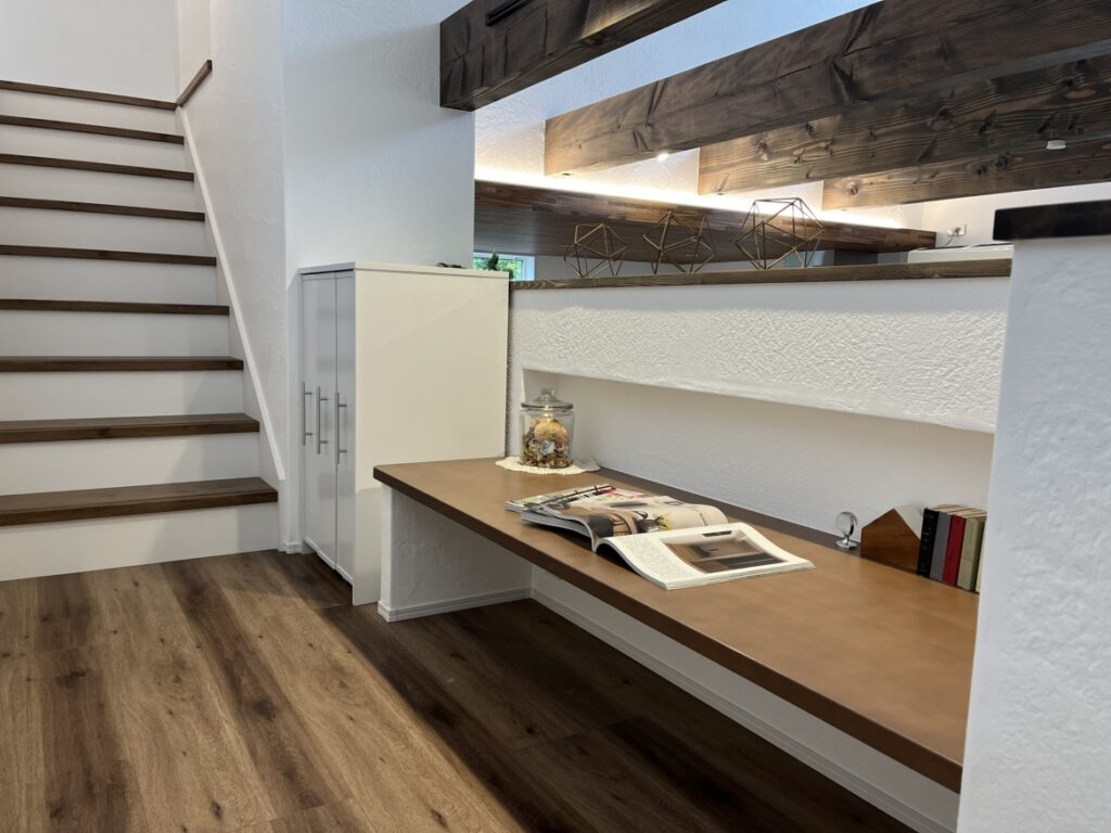 こちらは、LDKに設けられたスキップフロアのカウンター奥にピッタリフィットの、漫画本棚です📚
