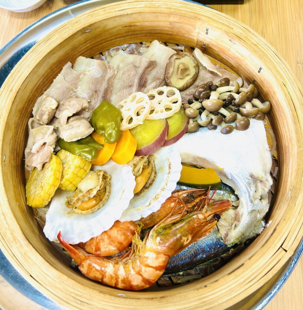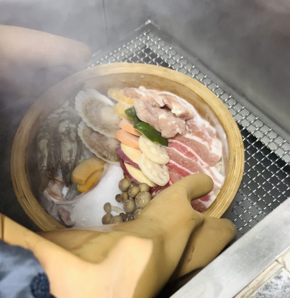 窯の中に自分で入れるだけですが、思った以上に熱い釜の中。温泉の蒸気で食材を蒸しあげます。