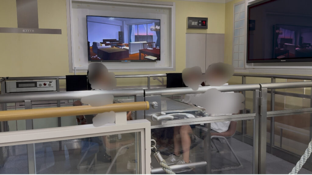 続いて「地震体験コーナー」。震度7の揺れを体感したのですが、思っていた以上に体が動かず…!家具の固定って大事なんだなぁと改めて実感しました。