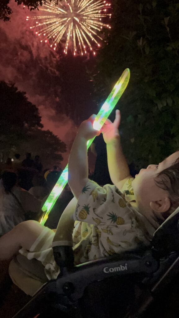 花火よりも光るおもちゃに夢中の次男。