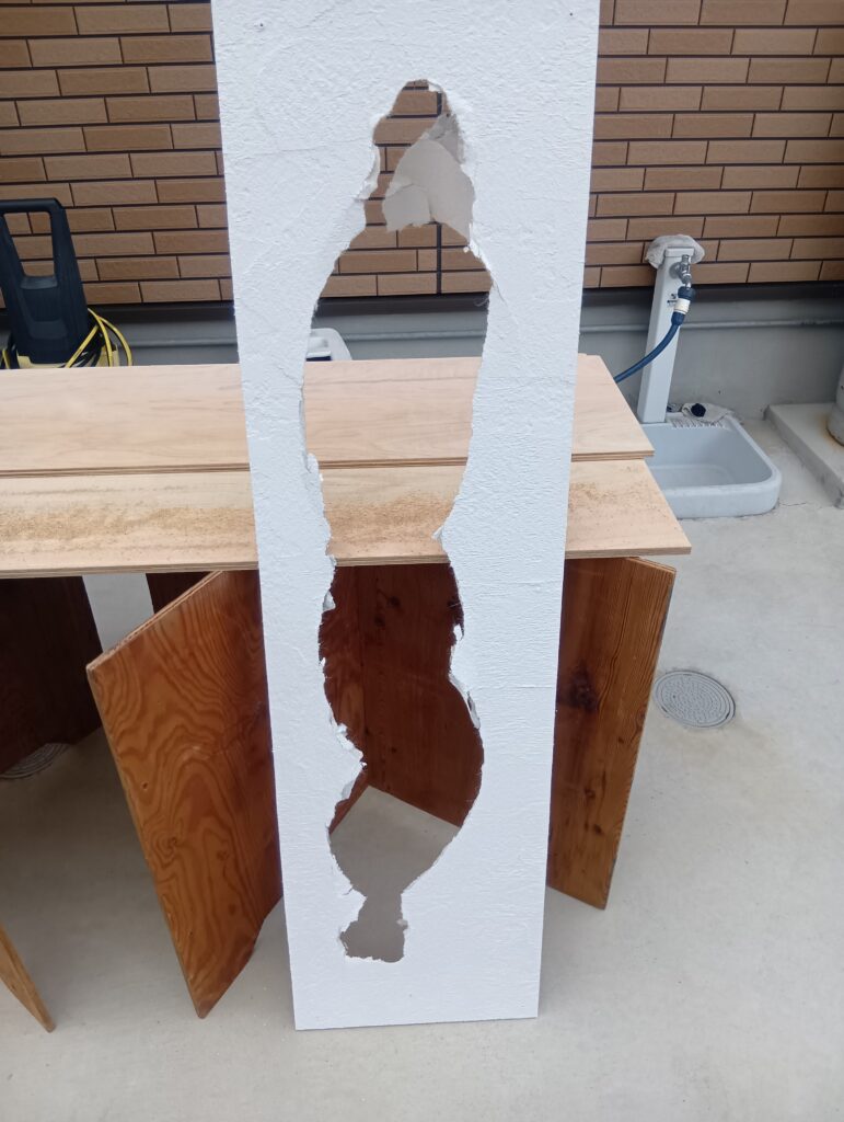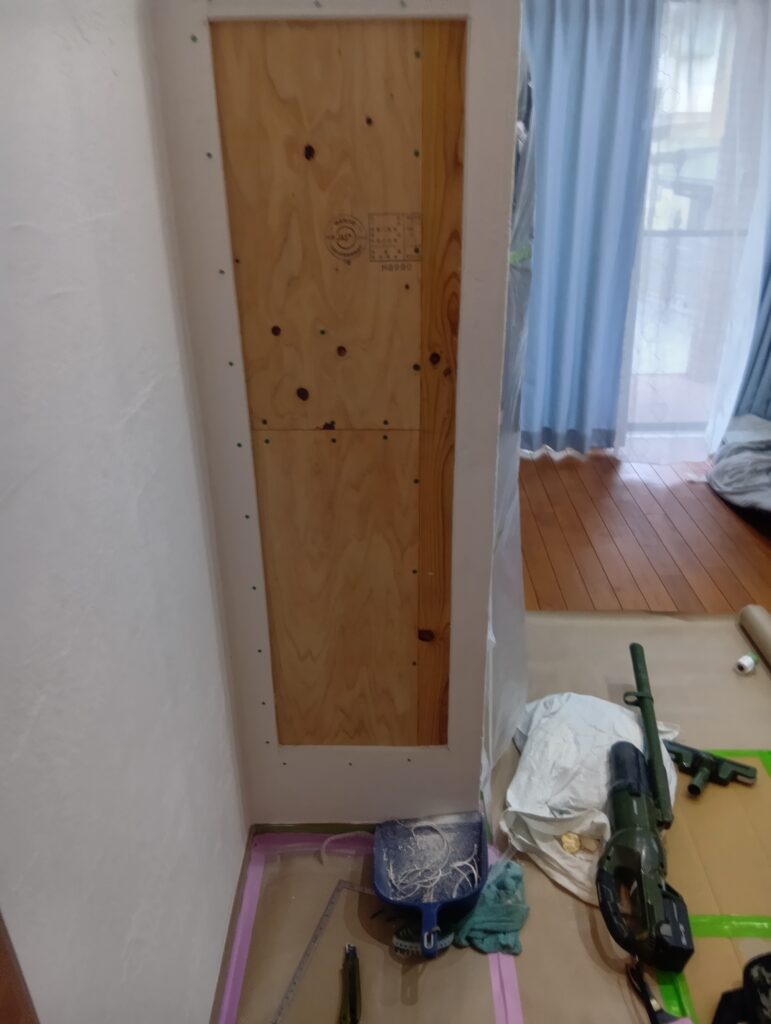 切り取った壁に合わせて、石膏ボードを切り合わせて貼ります。