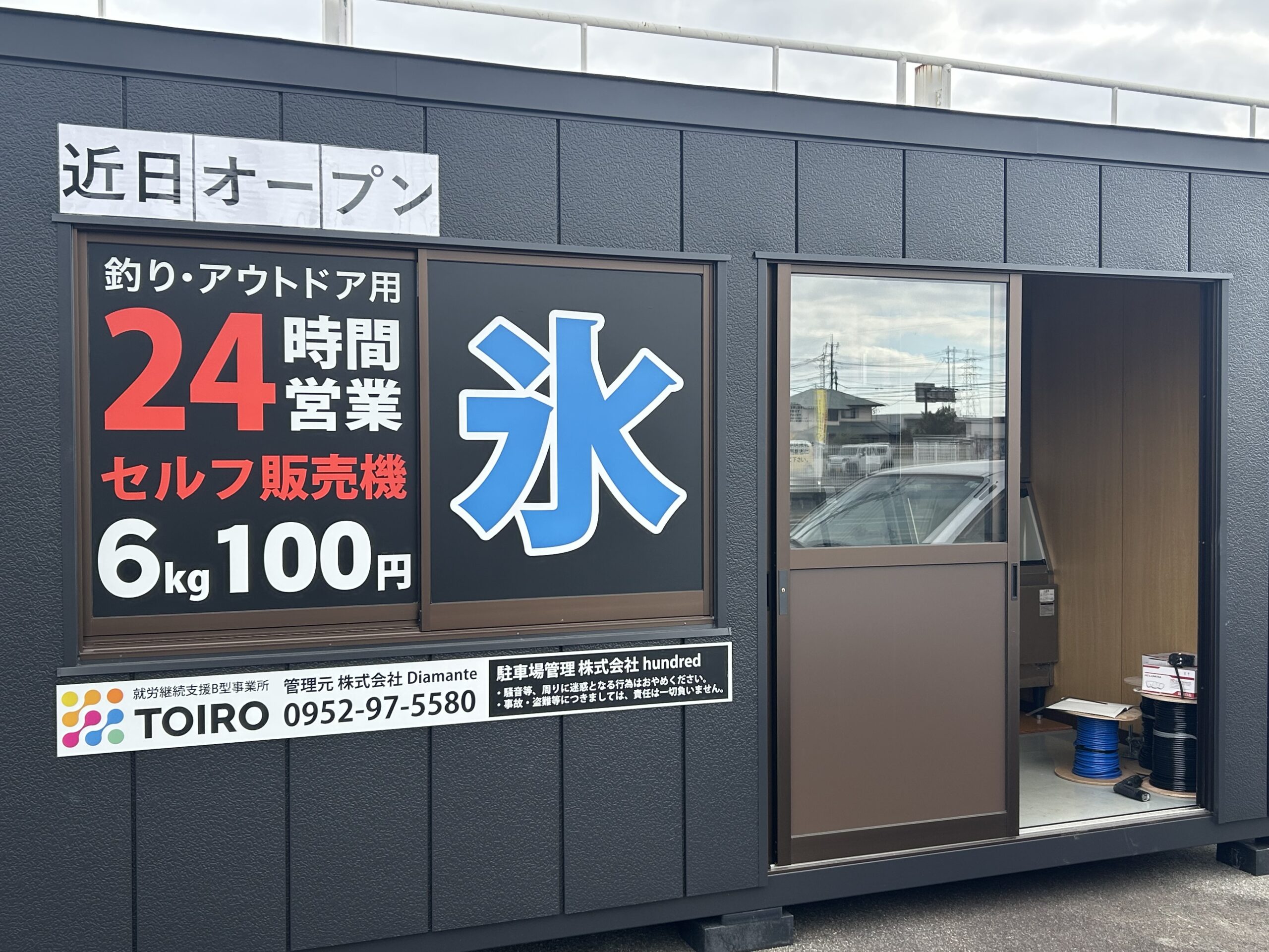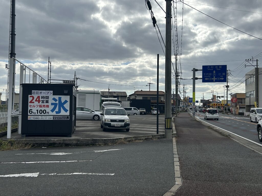 以前、マイケルさん(中古車販売店)の跡地の一角に『氷の無人販売店』が、オープンするみたいです。
