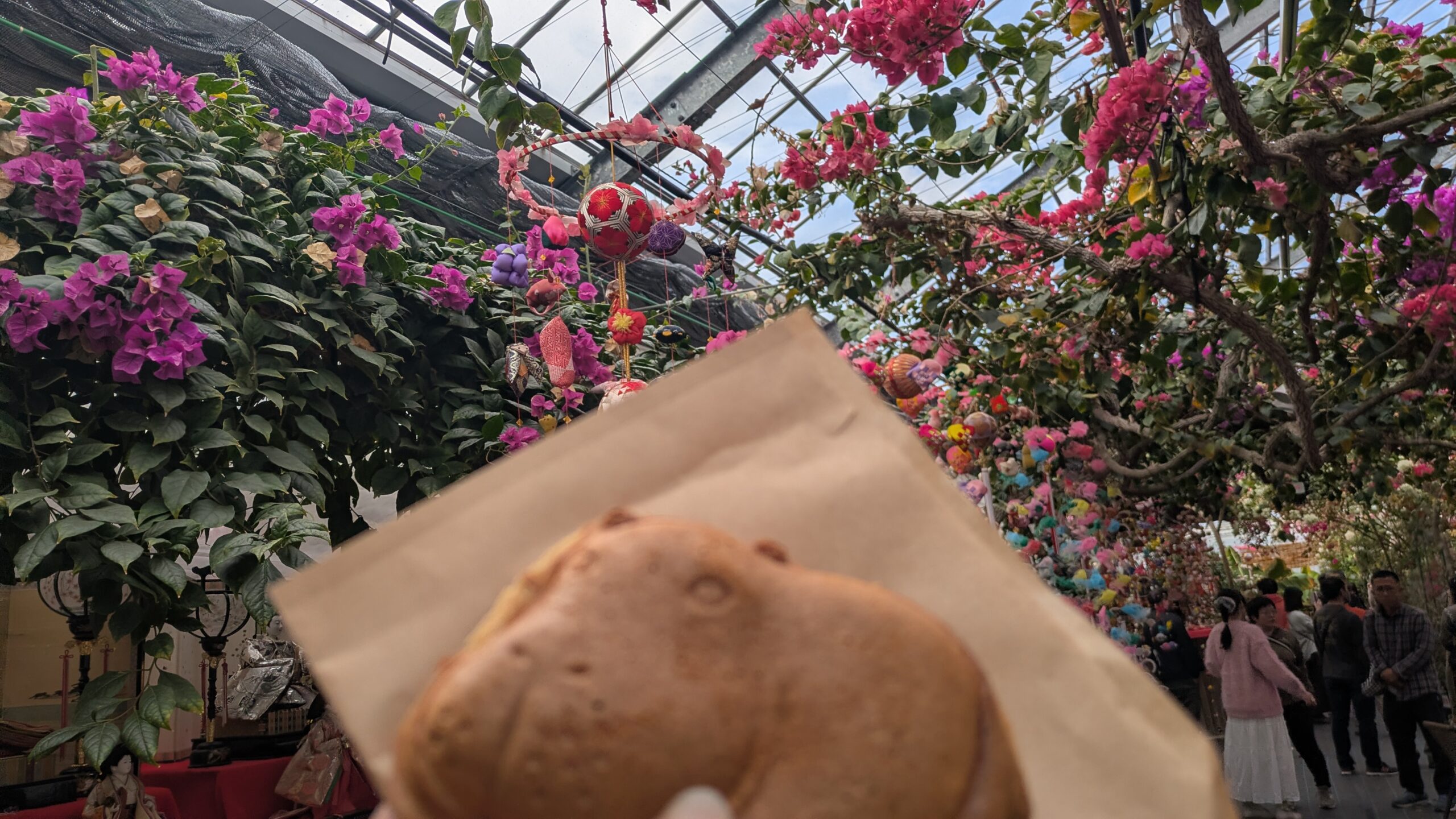 ビニールハウスの中に足を踏み入れると、そこには「さげもんの道」が!!!!!